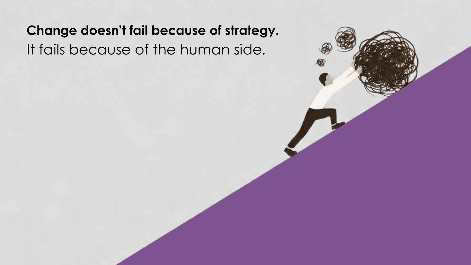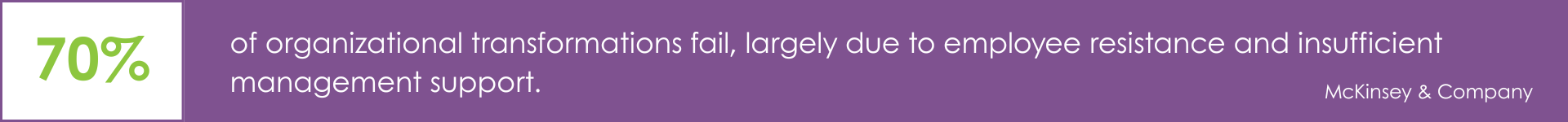 - Most transformation efforts fail not because of poor strategy, but because they underestimate the human side of change. Around 70% of change initiatives fall short, largely due to a lack of engagement, trust, and sustained behavior change.