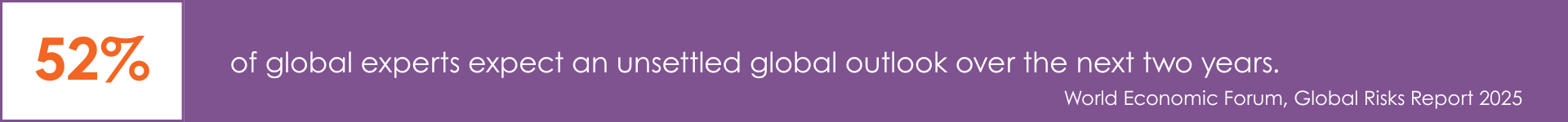 The World Economic Forum’s Global Risks Report 2025, drawing on insights from over 900 experts, describes an “increasingly fractured global landscape” where geopolitical, technological, and societal challenges threaten stability. More than half of respondents (52%) expect an unsettled global outlook over the next two years; that figure rises to 62% over a 10-year horizon.
