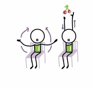 Stretching with alternating arms: raise both your arms high, and then stretch alternately towards the ceiling, first with one arm and then the other, (as if you were picking cherries from a tree) – 3-4x